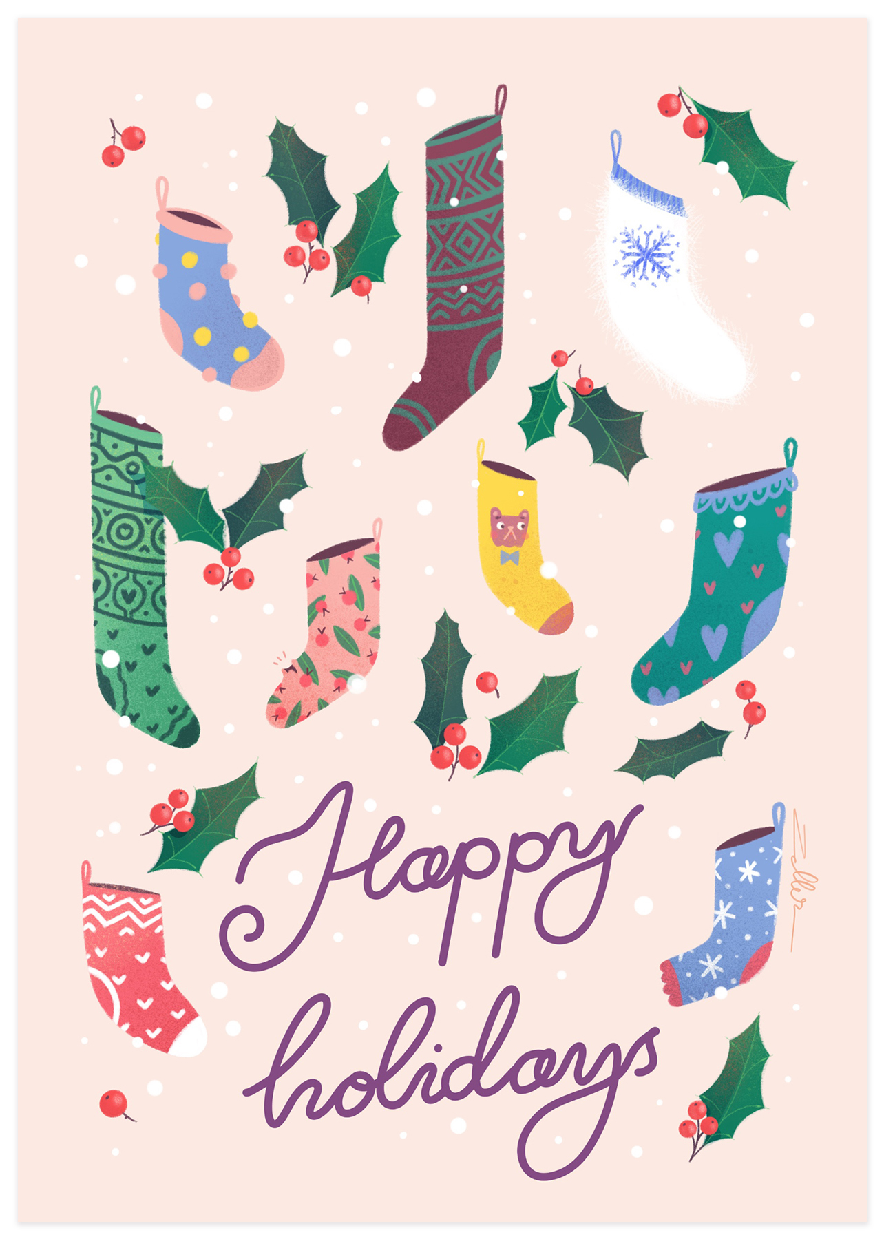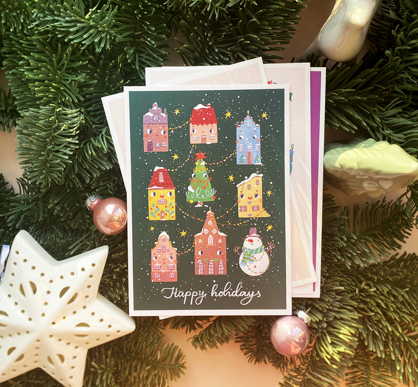 Серия иллюстраций для набора новогодних открыток для магазина Jungaloo.com, 2020