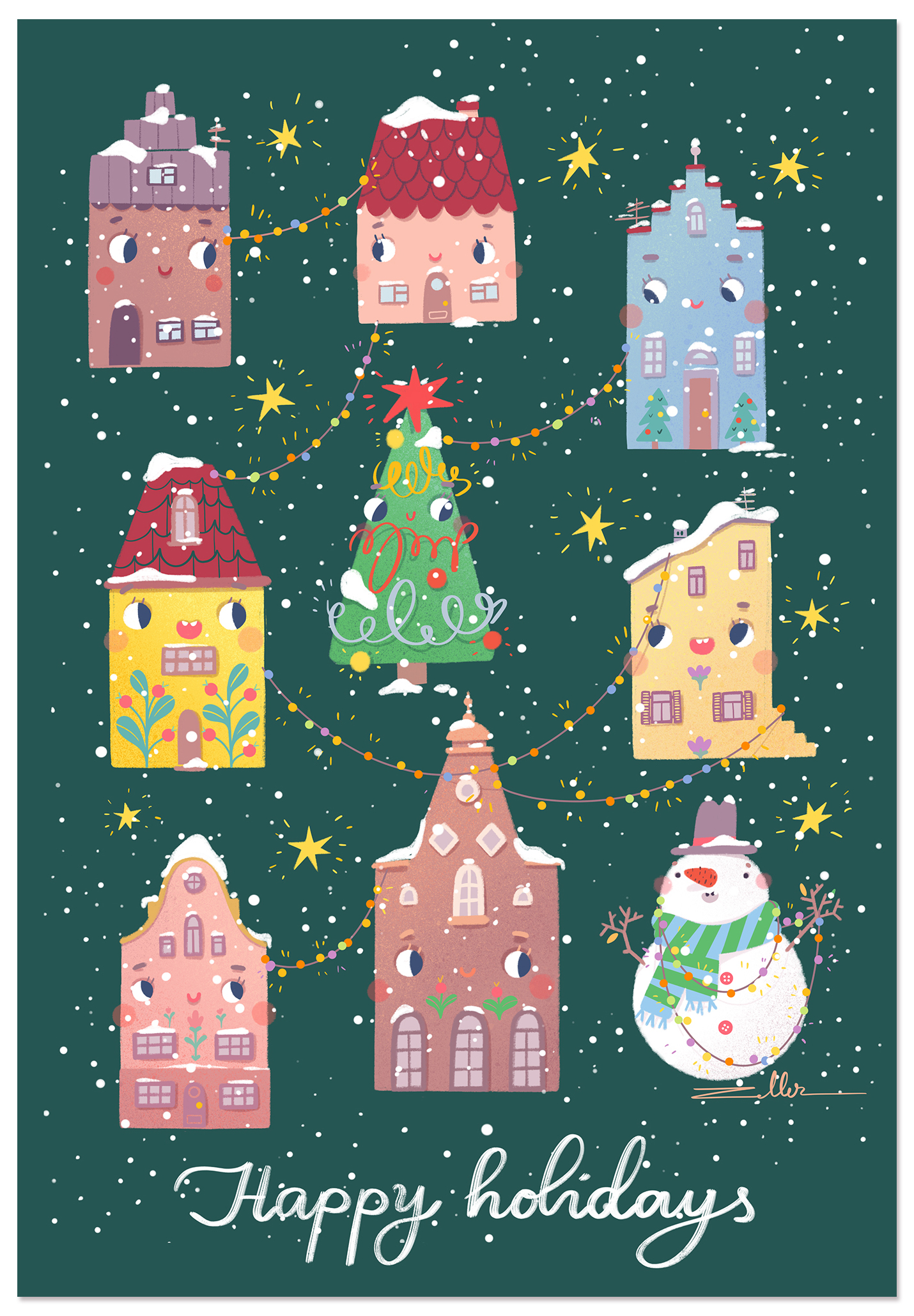 The illustration series for the christmas postcard set for the Jungaloo.com, 2020